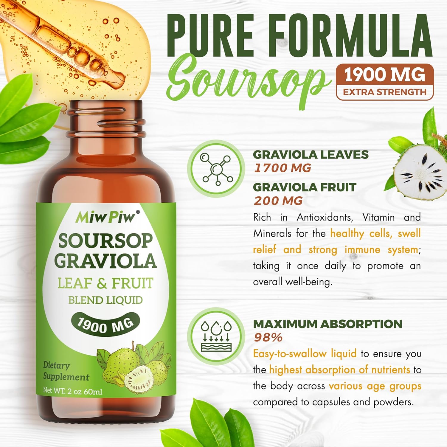 Miw Piw Soursop Graviola Liquid Drop 1900 MG- 2 Fl Oz