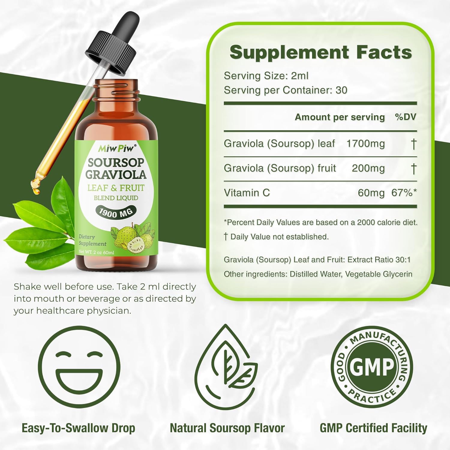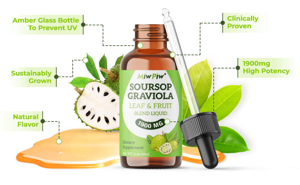 Miw Piw Soursop Graviola Liquid Drop 1900 MG- 2 Fl Oz