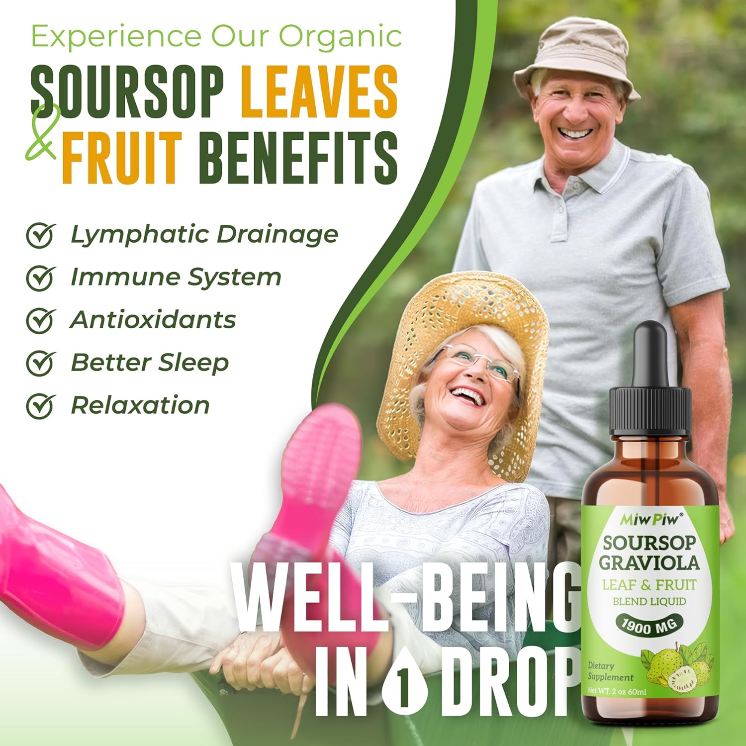 Soursop Graviola Liquid Drop 1900 MG - Immune Boost, Sleep and Relax, Sugar Free, Natural Flavor, Herbal Goodness, 98% Absorption, Soursop Bitter Leaf Extract Liquid